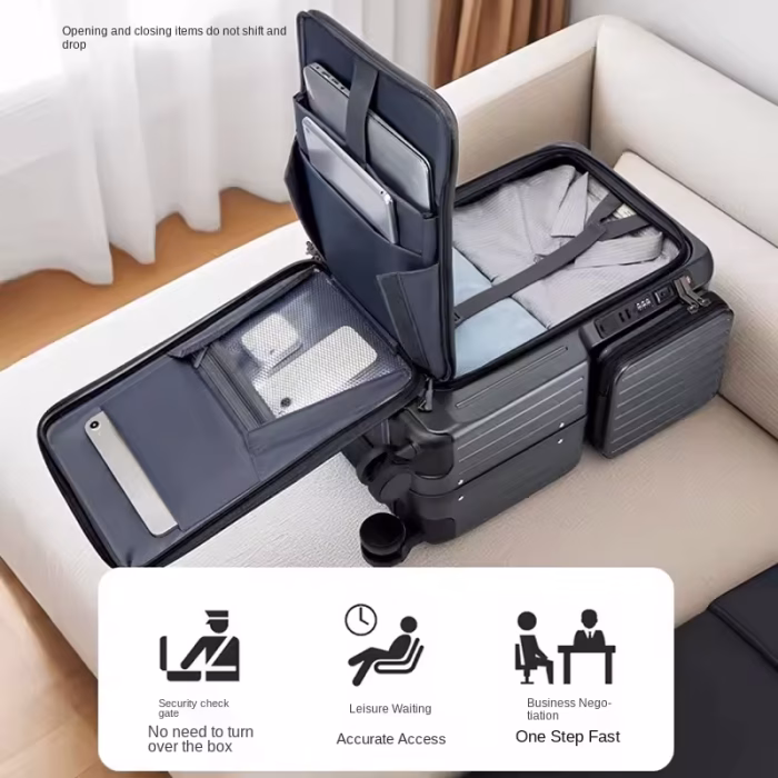 20 Inch Front Opening Multifunctional Trolley Suitcase With Password Lock-Cabin Trip Travel Luggage Bags