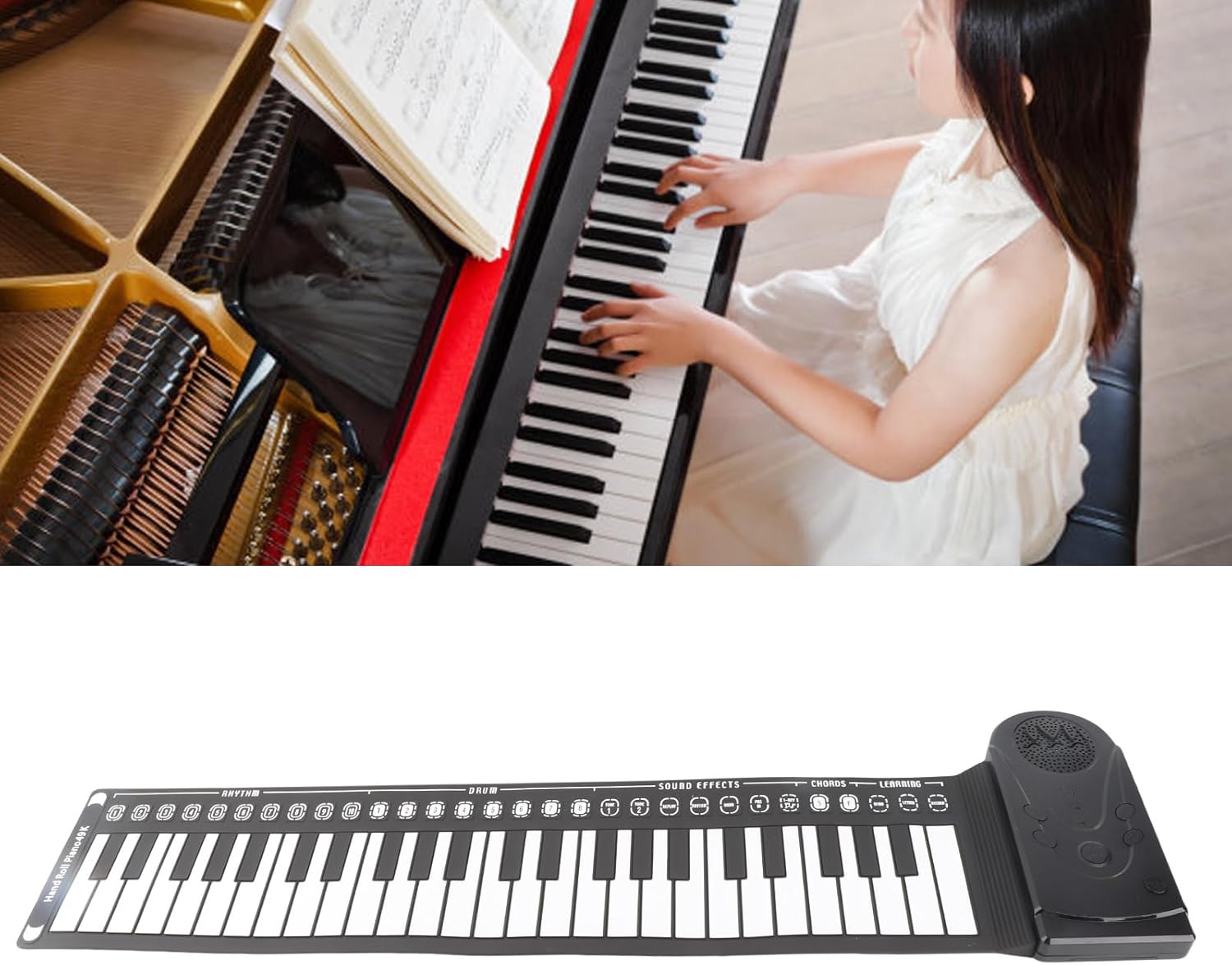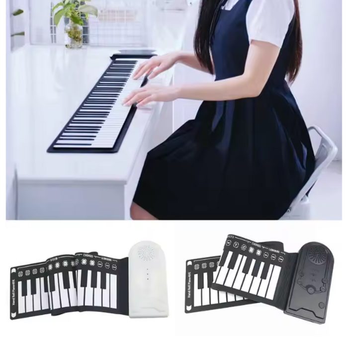 Flexible Silicone Electronic Portable Foldable Piano Hand Roll Up Keyboard with Recording & Playback Function for Travel Beginners Adults-49 Keys