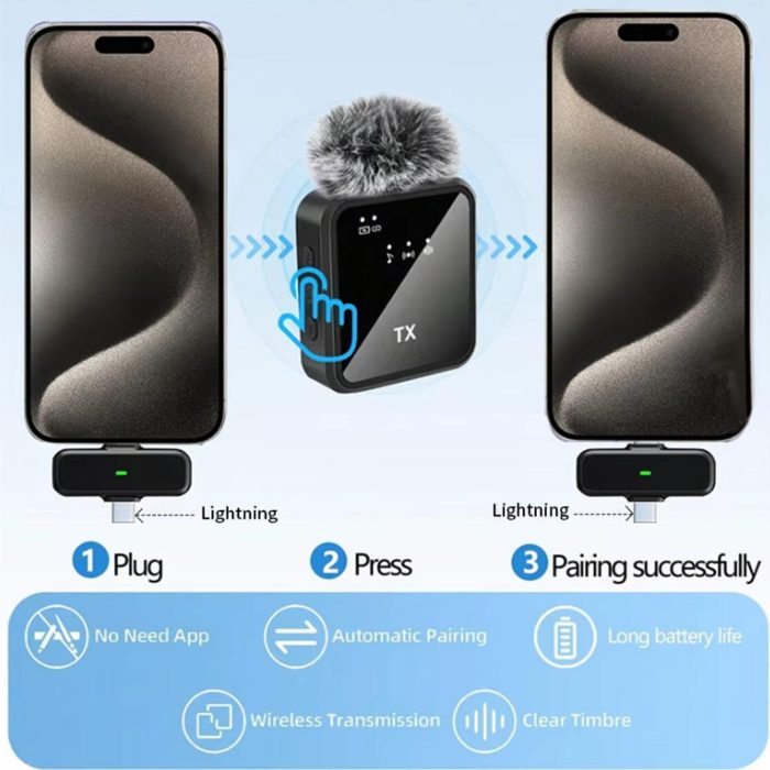 Wireless USB-C/Lightning Port Clip-On Microphone for Android/IPhone Devices – PRO-09