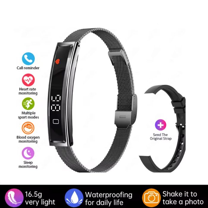 Smart Bracelet With Metal Strap No-sense Wearing Single Touch Intelligent Display Health Monitoring | Color- Black