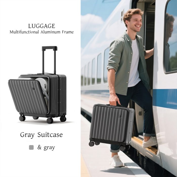 20 Inch Front Opening Multifunctional Trolley Suitcase with Password Lock – Cabin Trip Travel Luggage Bags